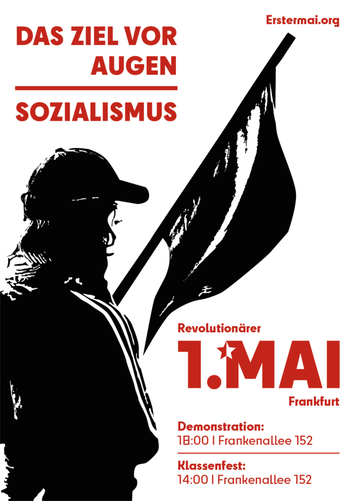 Der 1. Mai ist unser Tag. Seit über einem Jahrhundert ist er der internationale Kampftag der Arbeiter:innenklasse. Wenn wir uns am 1. Mai 2026 in Frankfurt versammeln, dann tun wir das nicht, um in einer Sonntagsrede die Errungenschaften des „Sozialstaats“ zu feiern. Wir tun dies, um eine neue Aufbruchsstimmung zu entfachen. Wir haben ein klares Ziel vor Augen: den Sozialismus! In einer Zeit, in der die Krisen des Kapitalismus immer brutalere Formen annehmen, zeigen wir: Eine andere Welt ist nicht nur möglich, sondern notwendig. Kommt am 1. Mai nach Frankfurt, um mit uns den Kampf für eine Gesellschaft ohne Ausbeutung, Unterdrückung und Krieg aufzunehmen!