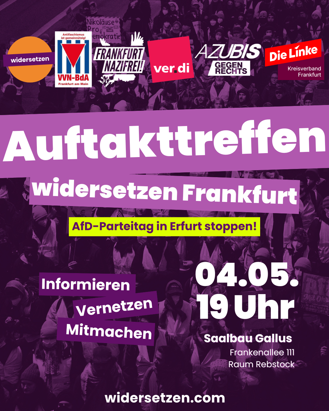 Komm zu unserem Auftakttreffen am 4. Mai im Saalbau Gallus um 19 Uhr!
